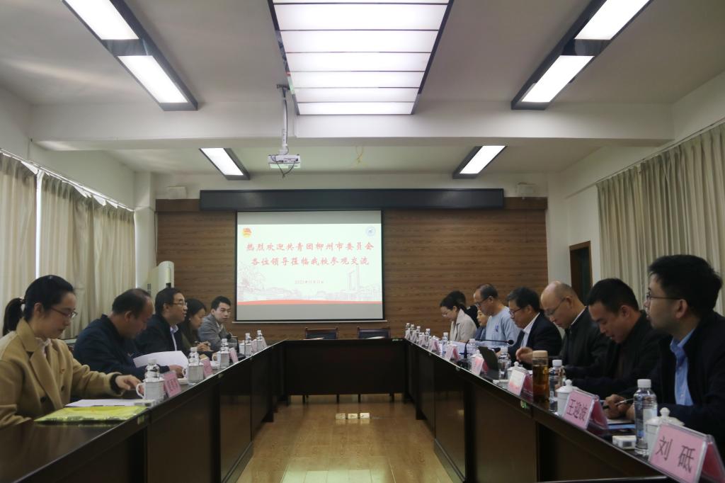 2021年11月11日上午,共青团柳州市委书记张扬一行来访太阳集团城网站2017。学校在屏风校区教八栋415室就“青聚龙城计划”柳州青年招才引智专项行动工作召开座谈会。太阳集团城网站2017党委副书记吴志强出席座谈会并讲话,校团委、招生就业处主要负责人以及相关二级学院党委副书记、团委书记参加会议。