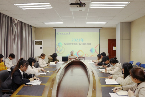 为总结各校级学生组织近期工作情况,加强考前诚信教育,12月24日,校团委在雁山校区行知楼B301会议室组织召开2021年秋季学期12月校级学生组织联席会议,校团委组宣部余东东老师出席本次会议,各校级组织负责人代表参加本次会议。