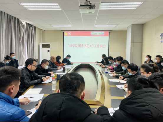 3月2日下午,校团委在雁山校区行知楼B301会议室召开2022年春季学期二级学院团委书记3月工作例会。校团委书记李雨、校团委副书饶蠡出席会议,校团委专兼职团干和二级学院团委书记、副书记参加会议。