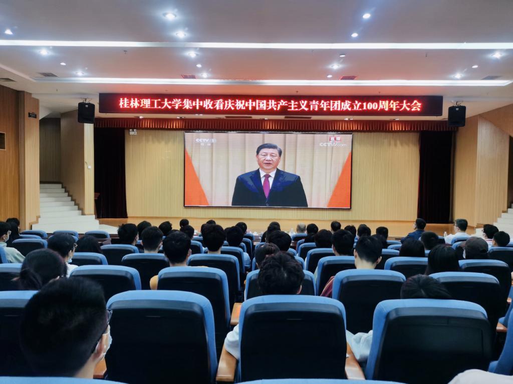 为第一时间了解、学习贯彻习近平总书记在庆祝中国共产主义青年团成立100周年大会上的重要讲话精神,太阳集团城网站2017组织师生代表在雁山校区图书馆报告厅集中收看大会直播实况。学校党委副书记吴志强,学工部、研工部、团委等相关职能部门负责人、各学院党委副书记及团委书记与团员青年代表、青马班学员一起集中收看大会直播,各学院设分会场组织学生骨干同步收看。