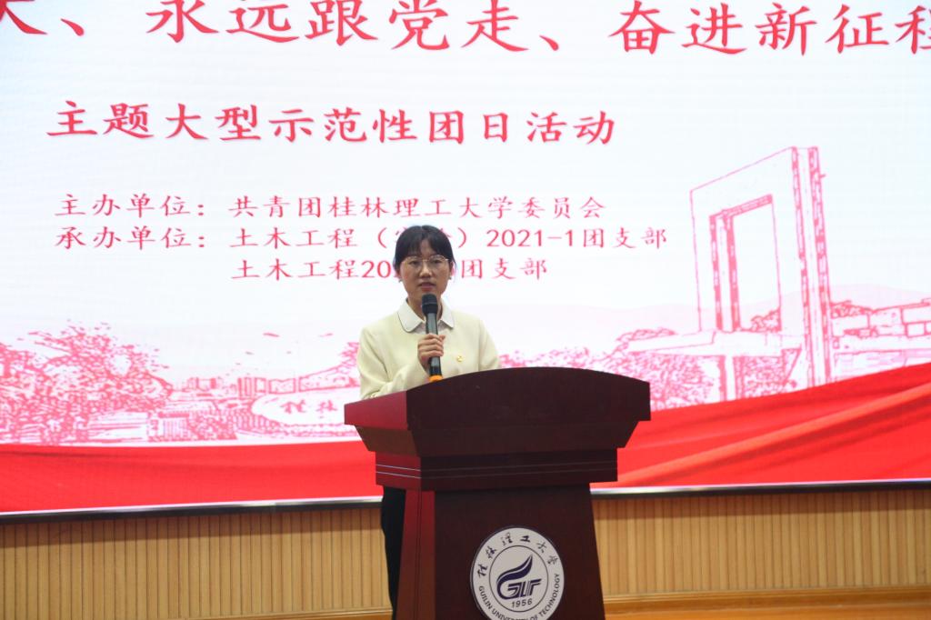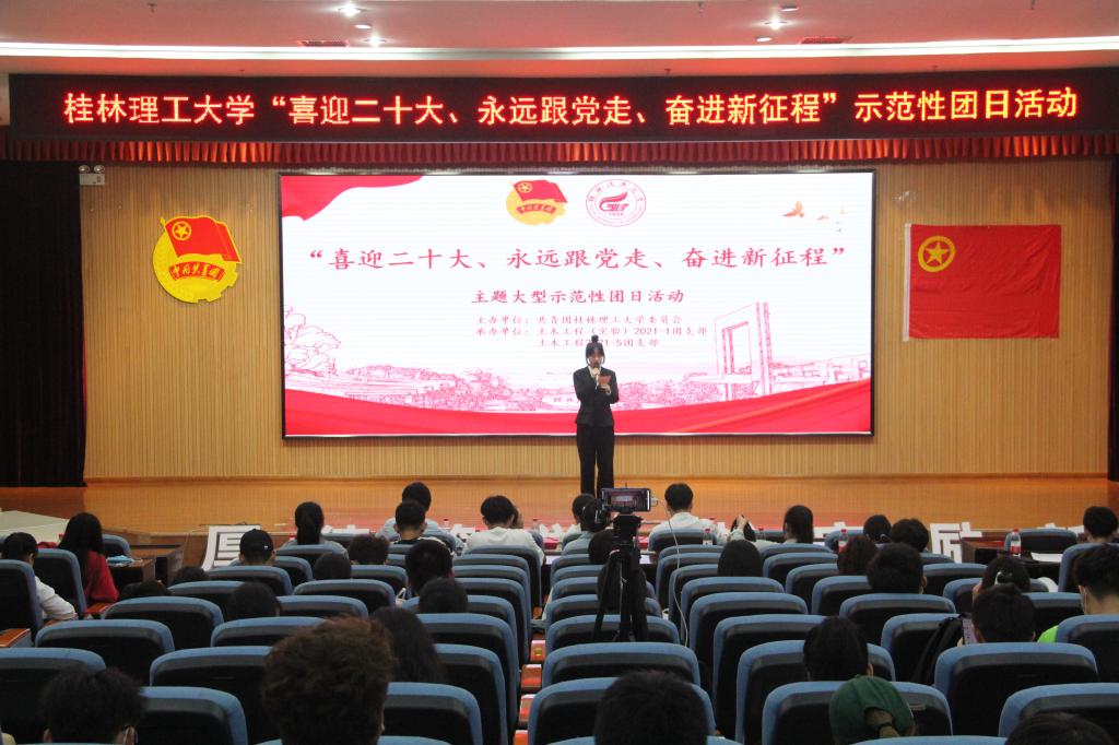 5月24日晚,太阳集团城网站2017“喜迎二十大、永远跟党走、奋进新征程”示范性团日活动在雁山校区图书馆报告厅顺利举办。本次活动由校团委主办,土木与建筑工程学院土木工程(实验)2021-1班团支部和土木工程2021-5班团支部承办。校团委副书记莫媛、土木与建筑工程学院党委副书记唐丽华、土木与建筑工程学院团委副书记安邦国及土木与建筑工程学院辅导员张宇博出席活动,各学院团委组织部代表及各学院团支书、班长、学生代表参加本次活动。