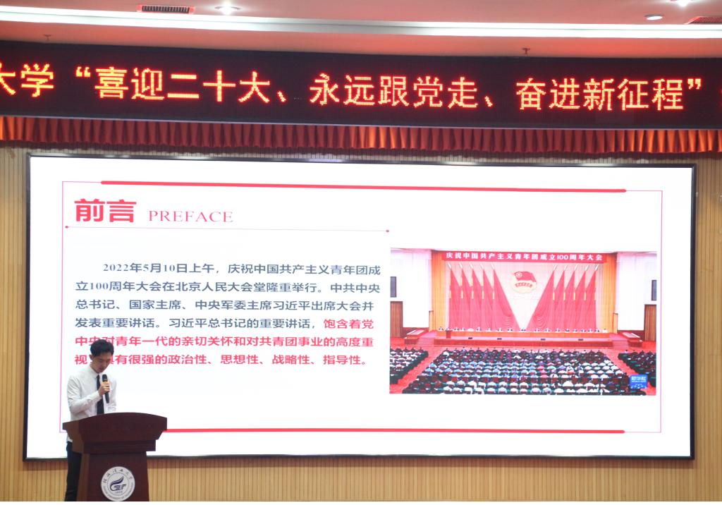 校团委副书记莫媛在总结点评时,对本次活动的顺利举行表示了肯定,她表示,学校广大团员青年要加强理论学习,坚定理想信念,争做新时代学生楷模,并期望学校基层团支部能够发挥积极性和主动性,发挥战斗堡垒作用,以实际行动迎接党的二十大,用青春的能动力和创造力激荡起民族复兴的澎湃春潮,用青春的智慧和汗水打拼出一个更加美好的中国。