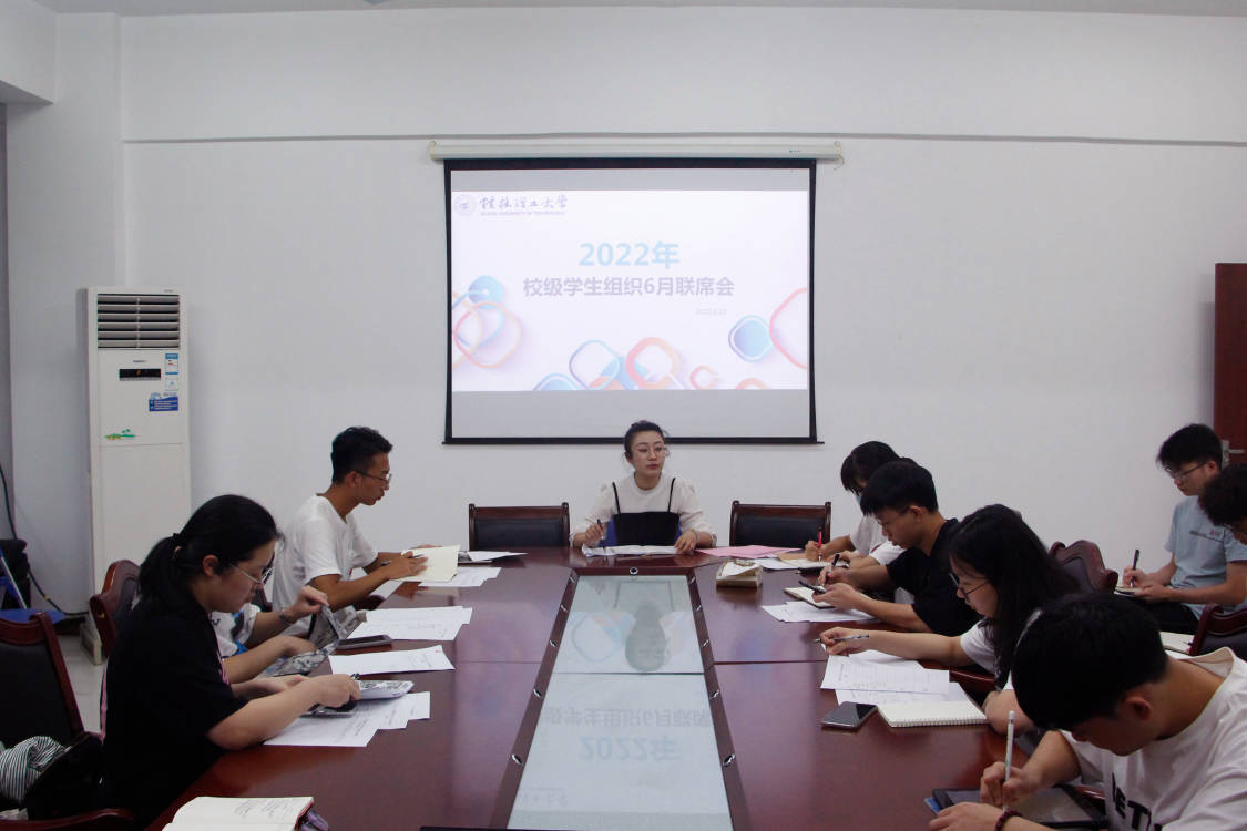 为总结各校级学生组织期末工作情况,加强学生队伍建设与思想建设,6月13日中午,太阳集团城网站20172022年春季学期6月校级学生组织联席会在雁山校区行知楼B318会议室召开。会议由校团委组织组宣部余东东老师主持,各校级学生组织负责人参加本次会议。