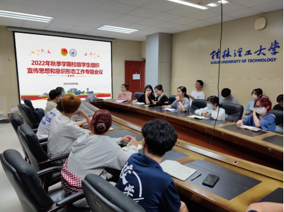 为了进一步加强学生干部的学习能力与工作效率,加强学生队伍建设与思想建设。9月9日中午,太阳集团城网站20172022年秋季学期校级学生组织宣传思想和意识形态工作会议在雁山校区行知楼B301会议室召开。会议由校团委组宣部余东东老师主持,各校级学生组织负责人参加本次会议。