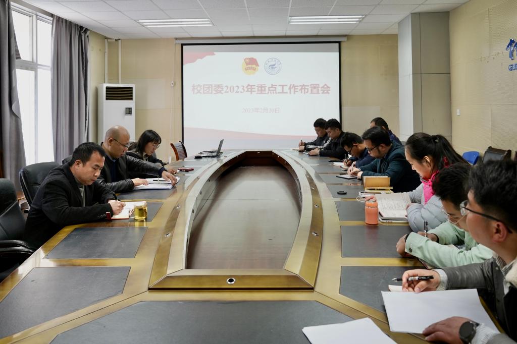 2月20日下午,校团委在雁山校区行知楼B301会议室召开2023年重点工作布置会,会议由团委书记李雨主持,校团委全体干部参加本次会议。