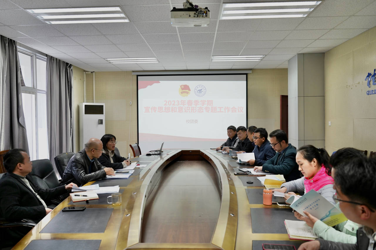 2月20日下午,校团委在雁山校区行知楼B301会议室召开2023年春季学期宣传思想与意识形态工作专题会议,会议由团委书记李雨主持,校团委全体干部参加本次会议。