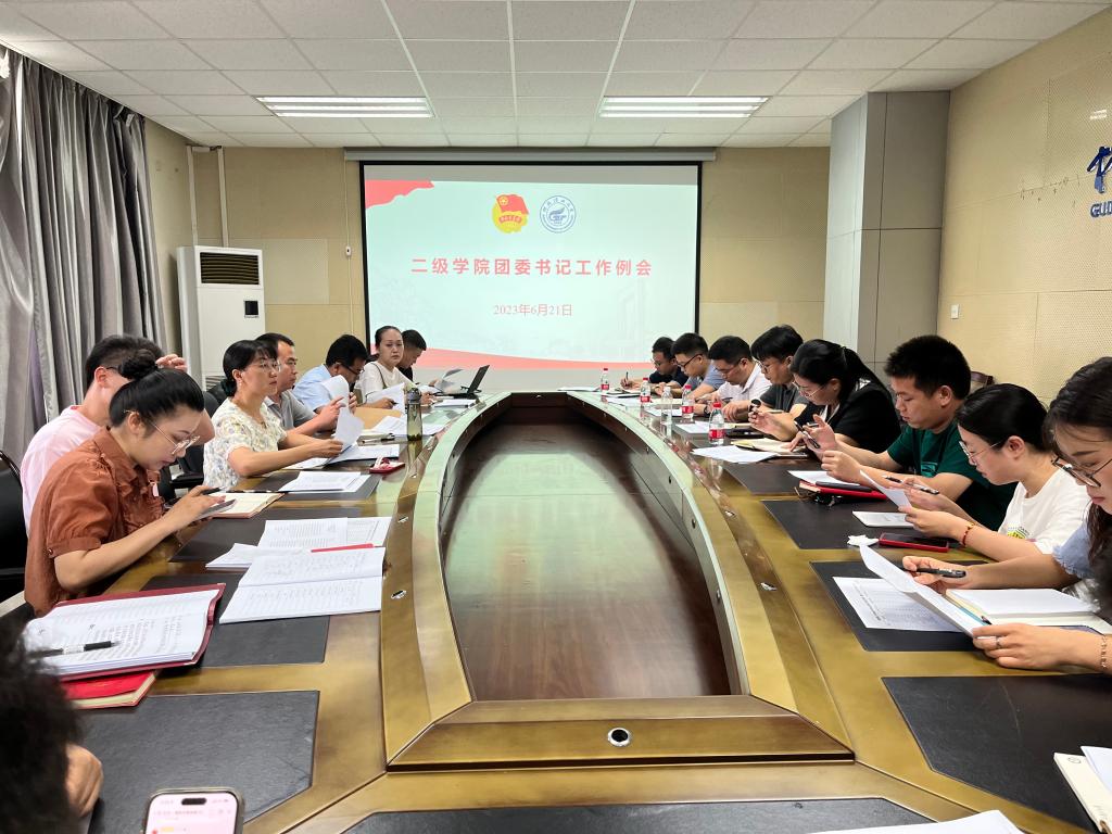 6月21日上午,校团委在雁山校区B301会议室召开2023年春季学期团委书记6月工作例会,校团委全体成员,各二级学院团委书记、副书记参加了会议,会议由校团委副书记莫媛主持。