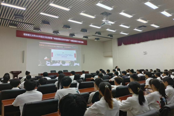 为引导团员和青年认真学习领会习近平新时代中国特色社会主义思想,切实增强基层团支部活力,进一步提高基层团干部的理论水平和业务能力,10月18日,学校在雁山校区图书馆报告厅召开2023年团支书培训班暨“争做挺膺担当的时代青年”专题团课,学校团委副书记(主持工作)潘思伊,团委副书记饶蠡,团委副书记慕宗良,团委专兼职团干,二级学院团委书记、副书记出席活动,学生会、研究生会成员,学校第十二期青马班学员,基层团支部书记参加活动。本次活动采用“现场宣讲+线上直播”的形式同步进行,在雁山校区、屏风校区、南宁分校分别设立视频分会场,累计1000余人参加,基层团支部书记参与率达100%。