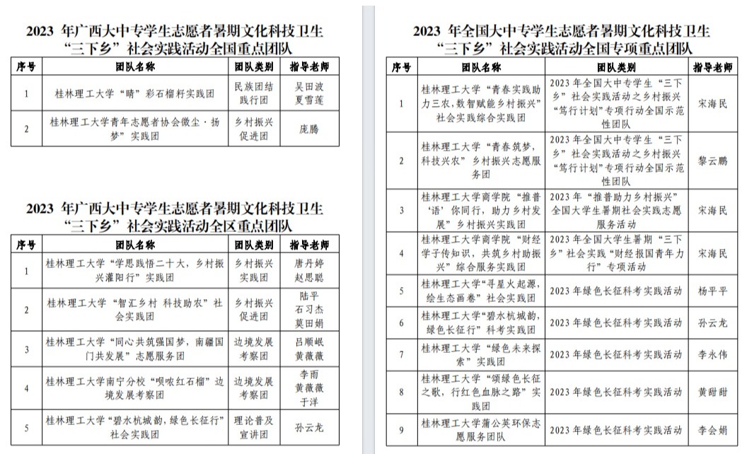 据悉,今年全区共评选出2023 年广西大中专学生志愿者暑期文化科技卫生“三下乡”社会实践活动全国重点团队68支、自治区重点团队200支。