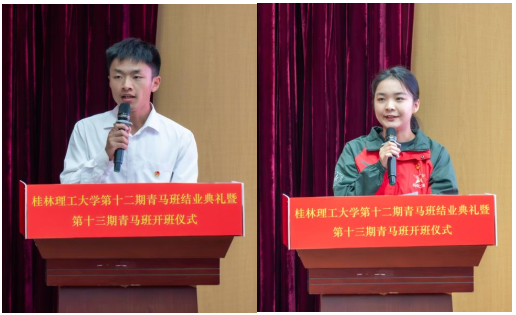 第十二期、第十三期“青马班”学员代表王以晗、蒋晨冉同学分别作表态发言