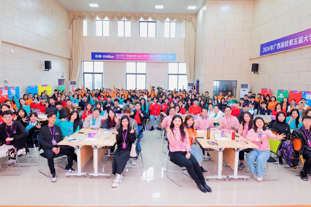 “国际创客马拉松”是一场持续32小时的创新与创意挑战,来自全区各高校不同专业的同学们分成小组,选择一个主题项目充分发挥自己的想象力和创造力,设计制作具有创新性和实用性的产品模型并进行测试,最后进行路演展示。活动中,李芸慧同学与5位中国学生组成团队并担任项目负责人,团队通过调研创建“盛开式白兰花香薰——白兰花精油系列产品”项目,开发出花型香薰开花释香产品,推出花开居家香氛+系列滚珠式便捷香水系列产品,用白兰花的清香来缓解用户的疲劳,项目得到评委的赞许并斩获一等奖。阮氏贤庄同学与来自越南、中国学生组成8人团队,运用自己所具有的地域文化知识,与团队共同探讨出了符合东南亚国家口味的新美食——中越养生鸡肉粉,团队获得一等奖和最佳原型设计奖。