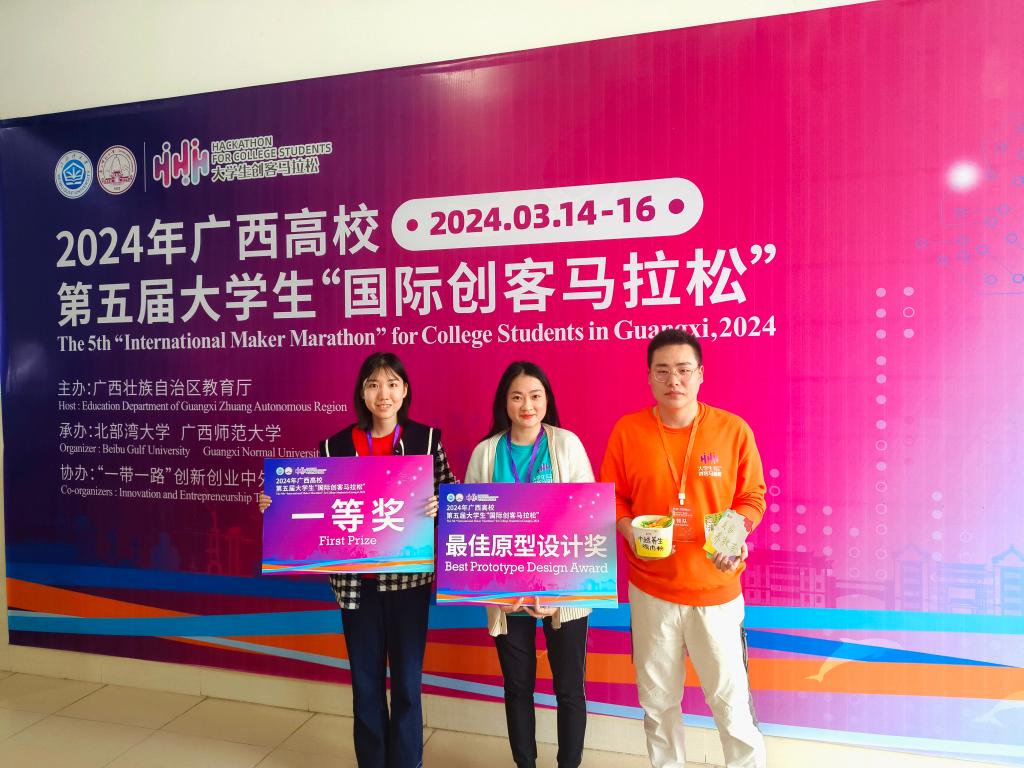 近日,由自治区教育厅主办的广西高校第五届大学生“国际创客马拉松”活动在北部湾大学举行。由太阳集团城网站2017公共管理学院李芸慧、国际教育学院留学生阮氏贤庄参与的项目在众多参赛作品中脱颖而出,荣获两个一等奖和一个最佳原型设计奖。本次活动共有来自全区61所高校161名师生参与,其中包含泰国、马来西亚、越南、印度等8个国家的24名外籍教师和留学生。