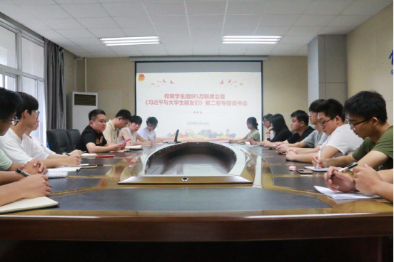 5月30日,校团委在雁山校区行知楼B301召开校级学生组织5月联席会暨《习近平与大学生朋友们》第二卷专题读书会。慕宗良副书记及各校级学生组织主要负责人参与会议,会议由校团委学生兼职副书记林泳兵主持。