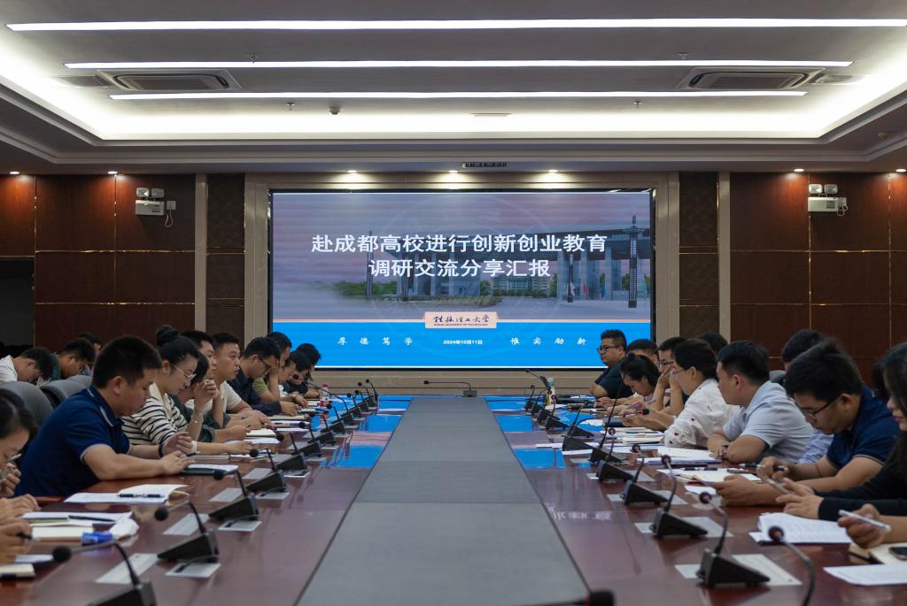 会上,团干代表王凯浩、韦孝鹏、余东东分别就赴成都高校进行创新创业教育调研交流进行汇报和分享,并围绕基层团组织建设,中国国际大学生创新大赛、“挑战杯”等科创赛事项目培育,创新创业教育课程体系,师资队伍、平台建设等方面的经验做法进行了深入探讨。