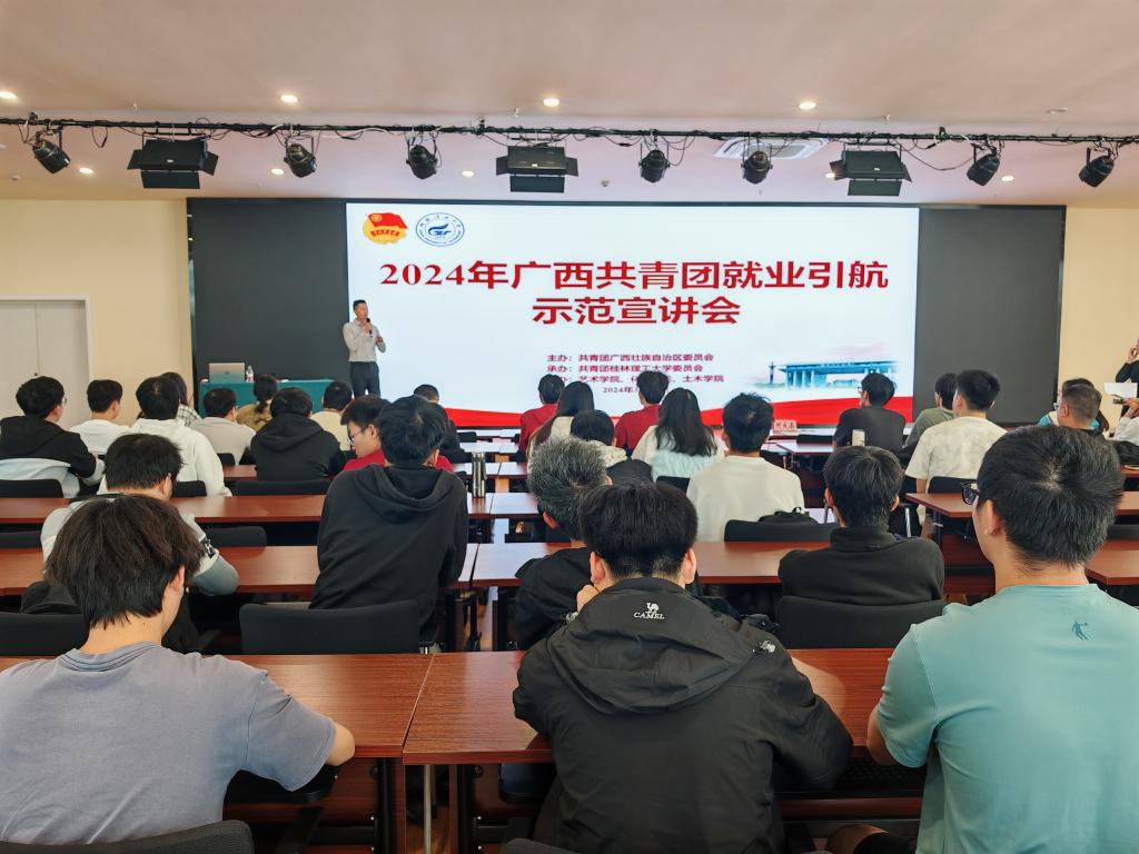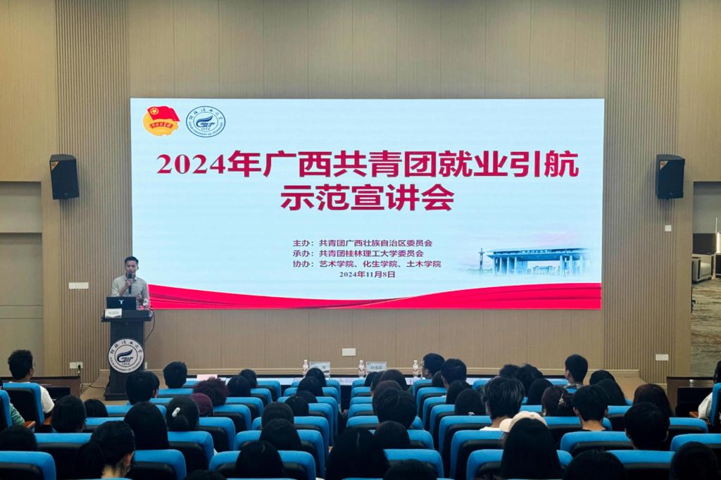 2024年11月8日,广西共青团“就业引航”示范宣讲会在太阳集团城网站2017屏风校区、雁山校区成功举办。此次宣讲会由共青团广西壮族自治区委员会主办,共青团太阳集团城网站2017委员会承办,艺术学院、土木学院、化生学院协办,旨在深入贯彻2024年“共青团促进大学生就业行动”中的“大学生就业引航计划”,引领青年学子积极应对就业挑战,引领青年学子积极面对就业挑战,科学规划职业生涯,为实现个人价值与国家发展贡献力量。宣讲会特邀广西智领教育咨询有限公司与广西素氧供应链管理有限公司总经理、横州市创业创新协会会长、太阳集团城网站2017土木学院2011级杰出校友何成添担任主讲嘉宾。学校创新创业学院专职副院长唐红兵及500余名师生参加会议。