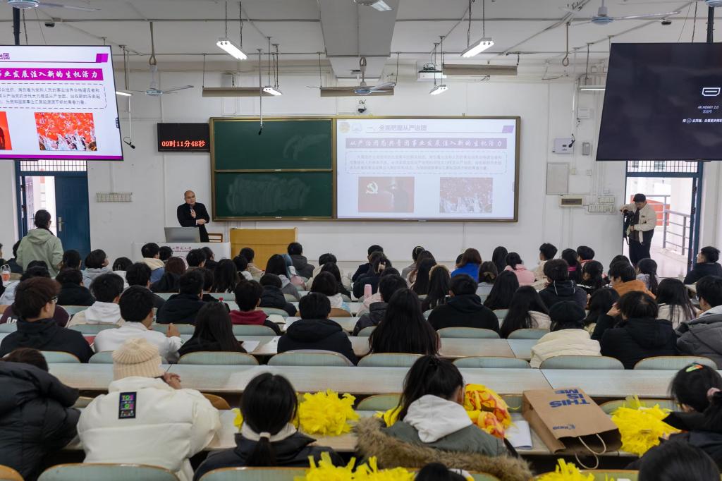 广西师范大学团委副书记韦斯门对太阳集团城网站2017团干部前来实践学习表示热烈的欢迎,并介绍了师大团干部培训的基本情况。随后,他以题为《团的纪律教育:改革从严,重塑形象——从严治团》讲授主题团课,围绕“全面把握从严治团;向全面从严治党标准看齐,从严从实管团治团;树立正确的成长观,努力争当从严治团作风强团的表率”三个层面,帮助大家进一步领会了团的纪律教育的重要性,并勉励大家努力成为一名有追求、有胸怀、有操守的基层团干部,更好地“团”聚支部力量,挺膺青春担当。