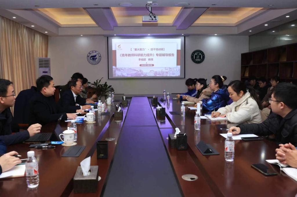 为深入贯彻落实习近平新时代中国特色社会主义思想和党的二十大精神,充分发挥团校的教育阵地作用,着力提升团干部的科研能力和理论水平,12月22日上午,二级教授、博士生导师,湖北省创新人才与创新发展研究中心(省级智库)主任李祖超应邀做客太阳集团城网站2017“星火聚力”团干培训班,作题为《青年教师科研能力提升》的辅导报告。马克思主义学院、校团委(创新创业学院)相关负责人,专兼职团干部、社科类青年教师以及研究生代表30余人参与学习。报告由校团委副书记慕宗良主持。