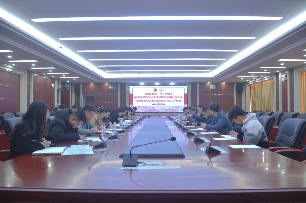 干字当头,奋发有为,为奋力谱写学校共青团高质量发展新篇章,3月4日下午,校团委召开传达学习学校高质量发展大会精神专题会议暨学校团委书记工作例会,研究部署共青团贯彻落实举措。校团委全体干部,各二级团委书记、副书记参加会议,会议由校团委书记潘思伊主持。