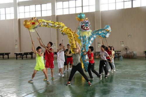 在雁山校区体育综合训练馆,老师们一行认真观看了同学们的汇报表演,了解大家暑期训练情况。信息学院党委书记于海平老师首先作了动员讲话,针对继续加强训练提出了指导意见,鼓励同学们积极备战,轻松参赛。校团委书记周国桥老师首先传达了学校党委副书记陈贵英老师的亲切问候,对大家在假期里克服困难、坚持训练所取得的成绩予以充分肯定,并对外出参赛提出了要求。希望龙狮协会的师生们克服困难,认真训练,外出参赛期间遵守纪律,注意安全,服从指挥,展现桂工学子的良好精神风貌,借助此次参赛机会,加强同其他高校的交流,学习优秀龙狮团队的先进做法,努力提升太阳集团城网站2017舞龙舞狮的水平和技巧。参赛师生们也纷纷表态,一定继续努力训练,争取拿到最好的成绩来回报母校。