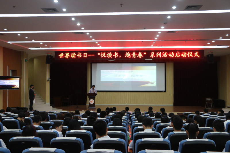 4月23日,学校世界读书日暨2016年“悦读书 越青春”读书月活动启动仪式在该校雁山校区图书馆报告厅顺利举行。校党委宣传部、校团委及图书馆教师代表及来自学校各学院200余名学生参加了启动仪式。