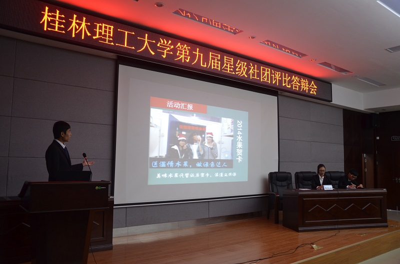 12月6日,星级评比答辩会于逸夫楼报告厅举行。校团委副书记陈小波出席了答辩会,他将本次星级评比简单概括为“社团星评、全面盘点、学习提高、树标立杆”四点,并提出社团干部要充分利用星级社团评比活动这一契机,各社团间相互学习,共同提高。展示环节,各社团代表逐一上台围绕社团宗旨,主要对社团的品牌特色活动,社团文化建设以及社团未来发展进行精彩PPT讲解,充分展现了社团的独特魅力。答辩中,各社团答辩成员思路严谨,应答流利,针对评委提出的问题简明扼要分析了社团情况并对未来发展进行全面的规划,充分展示了社团的精神风貌。