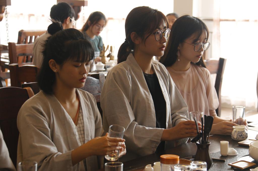 课上,吴晓仪老师结合自己的茶修经历,向学员们阐释茶艺的内涵,茶艺是一种艺术,是一种美的熏陶,通过这种方式,能更好地渲染出茶纯洁、质朴的气质,她强调说“茶艺”二字,茶为根本。李夏老师为大家展示了基础茶艺,并介绍了茶具的使用方法;亲自耐心地指导每一位学员,帮助学员提高技艺,修身养性,培养良好性格。