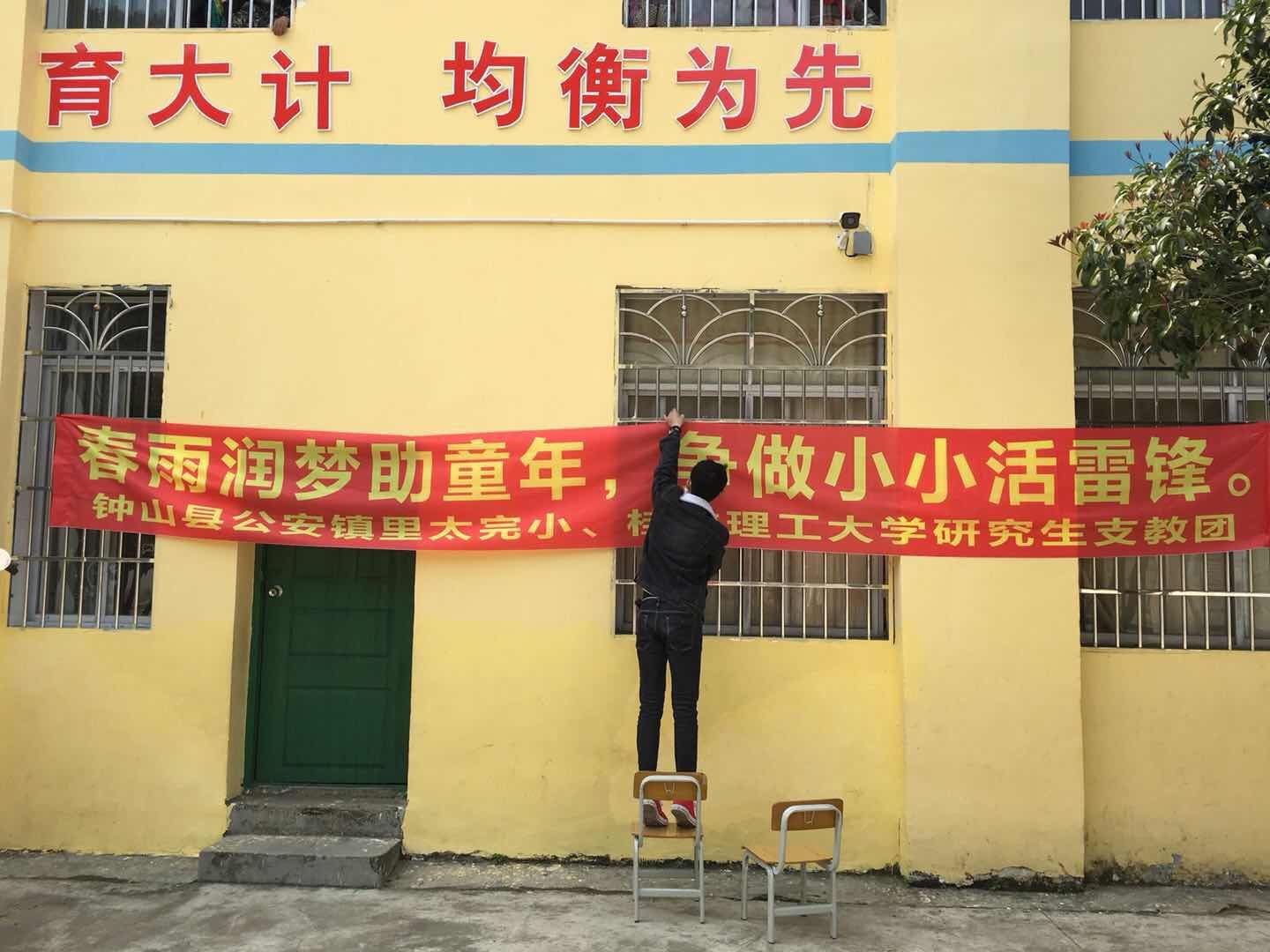 太阳集团城网站2017研究生支教团悬挂学雷锋44118太阳成城集团活动主题横幅