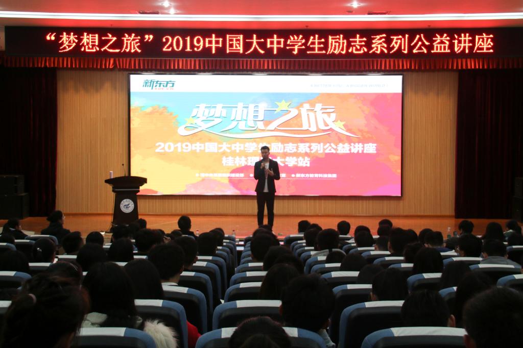 3月25日19:30,由共青团中央基层组织建设部、全国学联办公室、新东方教育科技集团联合举办的新东方“梦想之旅”2019中国大中学生励志系列公益讲座在太阳集团城网站2017雁山校区图书馆报告厅举行。本次讲座的主讲人为新东方雅思名师孟繁飞老师。校团委相关负责人、各学院辅导员及300余名学生参加了本次讲座。