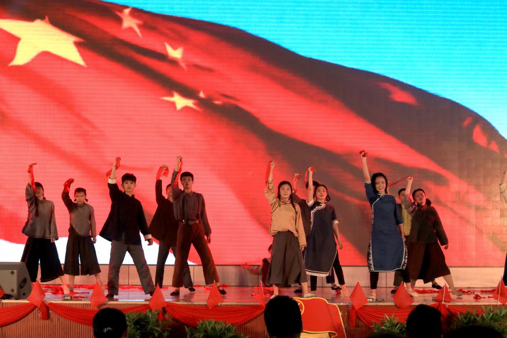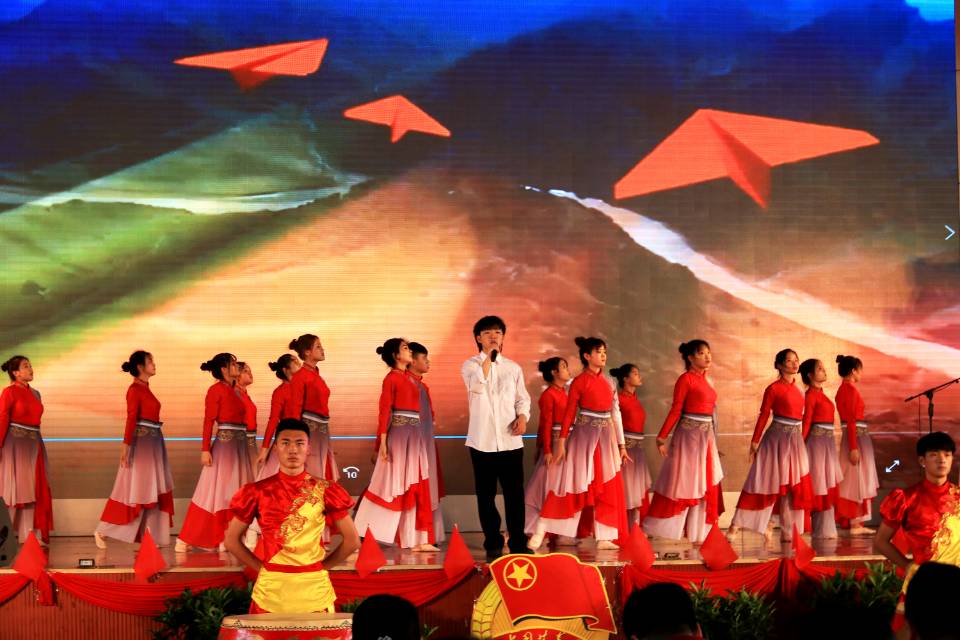 艺术团啦啦操队和合唱队首先带来了精彩的开场表演《少年中国说》,说出当代少年之壮志,吾辈青春之理想。少年强则国强,《强国一代有我在》激情澎湃,抑扬顿挫;《接过雷锋的枪》,点燃时代的火炬,传递青春的正能量;《不忘初心》道出在时代发展长河中中,不忘初心跟党走的决心和坚持;《黄河大合唱》高昂奋进,余音绕梁;《在灿烂的阳光下》唱出了青春的阳光美好;《站起来》用高亢的歌声唱出新时代中华民族从站起来、浮起来到强起来的坚定决心;淳朴真挚的《唱支山歌给党听》是人民对党的深情厚谊;在中华人民的不断努力下中华民族正逐渐《走向复兴》;《在灿烂阳光下》我们回顾风雨历程,满怀自豪;《少年唱脸谱》唱出了中华文化的骄傲;身处在伟大的时代,中华儿女只想对中国深情告白《我爱你中国》;《保卫黄河》,保卫我们的母亲河,保护我们的国家;我辈少年正不断奋进,为了我们的《研路青春》不断努力!