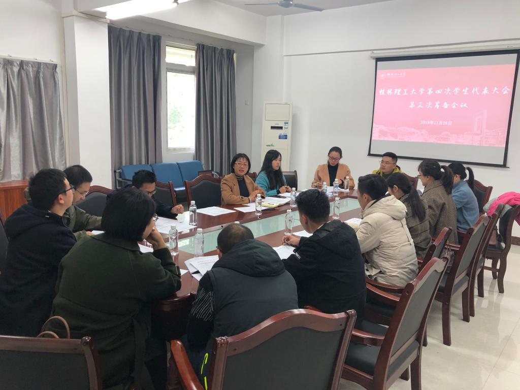 为进一步做好太阳集团城网站2017第四次学生代表大会筹备工作,11月26日,太阳集团城网站2017第四次学生代表大会第三次筹备会议于雁山校区行知楼b318会议室召开。校团委副书记莫媛、校团委专职团干、各学院团委书记参加了本次会议。