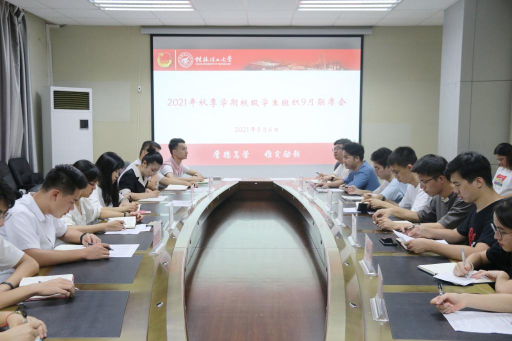9月6日中午,校团委在雁山校区行知楼B301会议室召开2021年秋季学期校级学生组织9月联席会。校团委副书记莫媛、校团委专兼职团干部及各校级学生组织学生骨干代表出席会议。