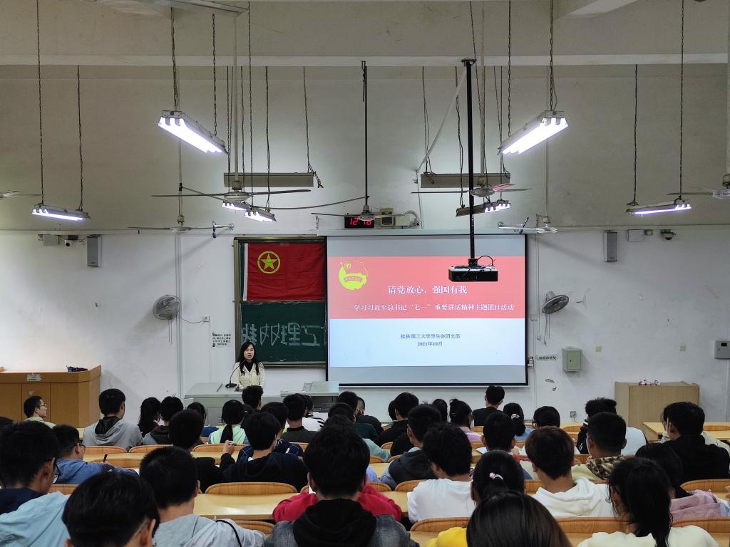 为充分学习领会习近平总书记“七一”重要讲话精神和意义,引导校学生会成员进一步坚定理想信念,10月12日中午,太阳集团城网站2017学生会团支部于雁山校区04111开展了“请党放心,强国有我”主题团日活动。校团委组织宣传部部长、校学生会指导老师刘茜雯老师出席本次活动,校学生会全体成员参加了本次团日活动。