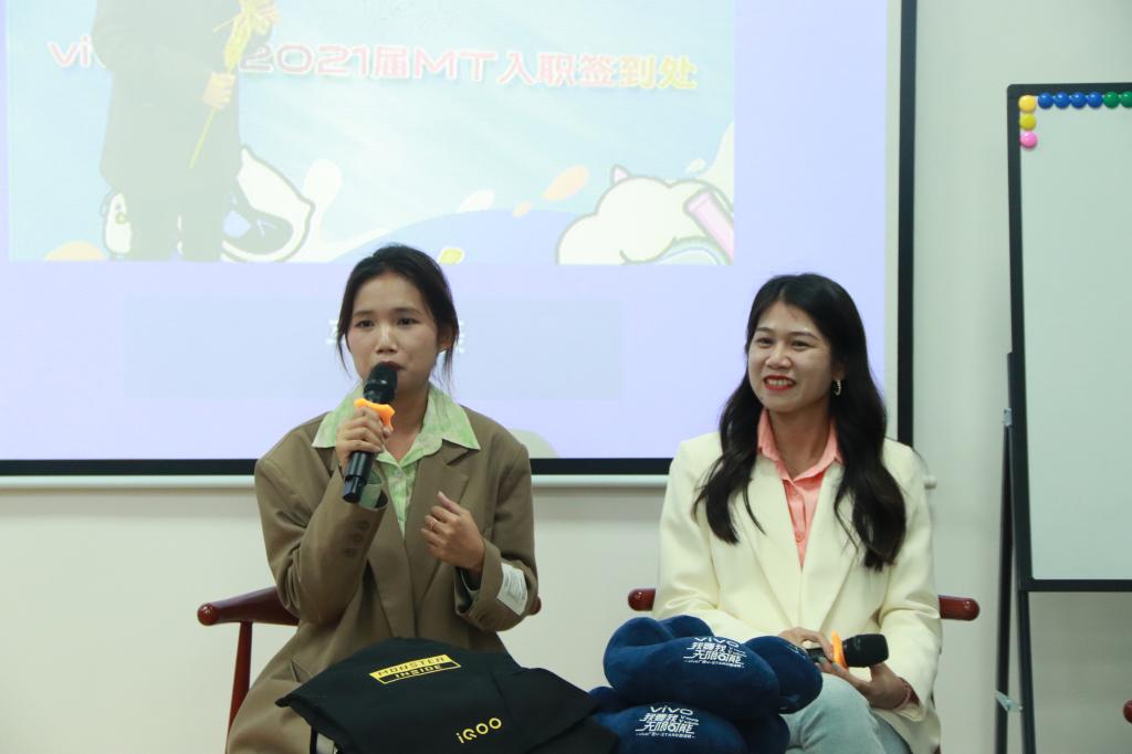 vivo广西人资部长蒋英(右)、vivo广西业务经理及太阳集团城网站2017校友马星辰(左)