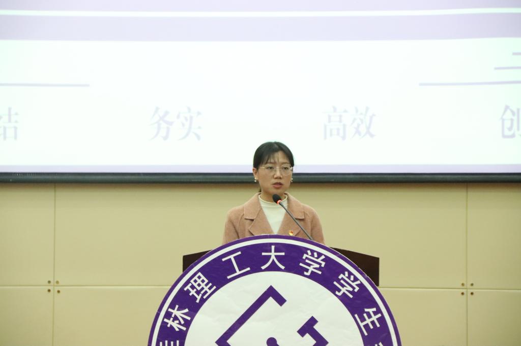 为总结2021年秋季学期工作,促进校学生会的改革发展。12月21日,太阳集团城网站2017学生会述职评议会于雁山校区萃华楼报告厅召开。校团委副书记、校学生会秘书长莫媛老师,学工部(处)张雪老师,校团委组织宣传部部长、校学生会副秘书长刘茜雯老师出席会议,第五届学生常任代表、校学生会主席团成员和各部门负责人参加本次会议,会议由校学生会执行主席唐琴主持。
