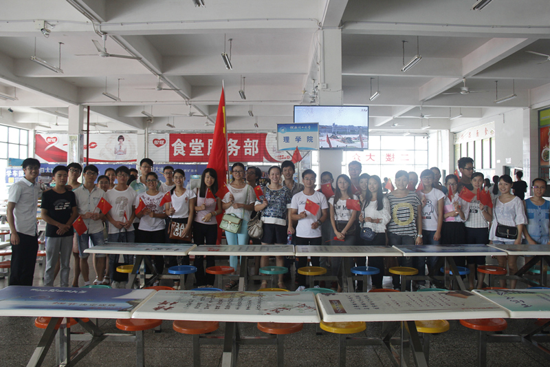 为了更好地铭记历史,缅怀先烈,9月3日上午8点20分,理学院全体学生党员、学生干部和部分班级代表在雁山校区1号饭堂二楼一同观看抗日战争暨世界反法西斯战争胜利70周年阅兵仪式。理学院党委副书记孙巍老师一同观看。