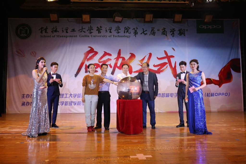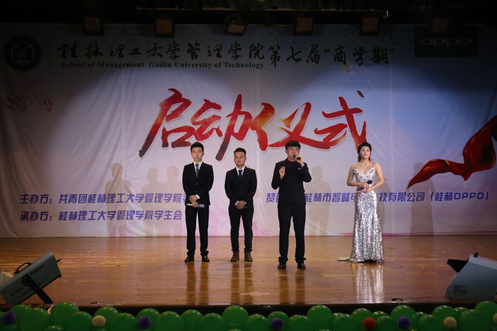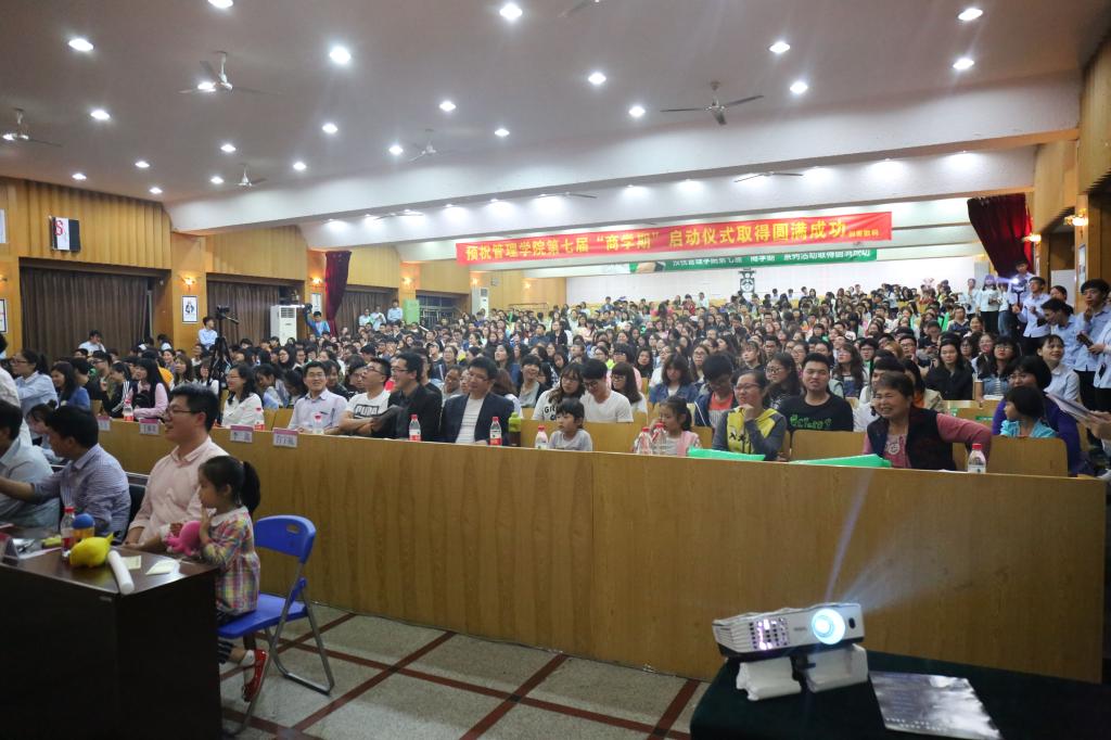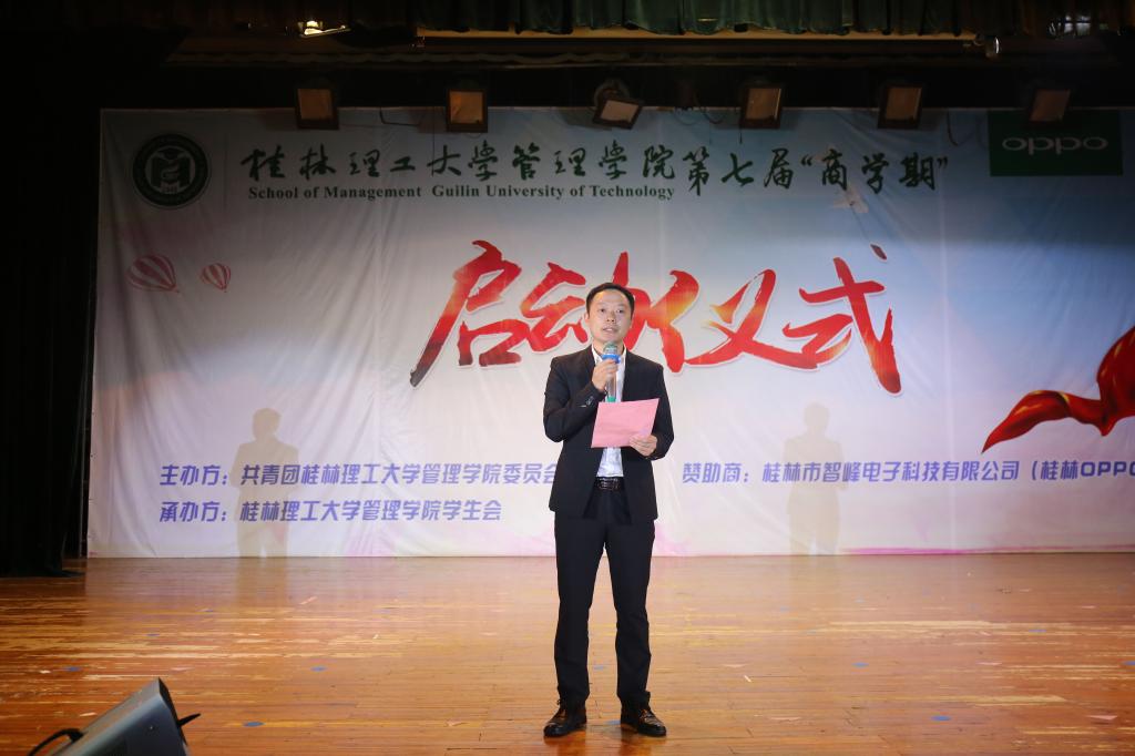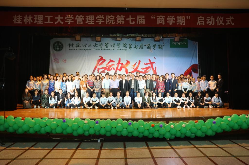 4月15日晚,管理学院第七届“商学期”系列活动启动仪式在屏风校区南礼堂隆重举行。学校学工处处长唐壮东、管理学院党委书记周章明、学校招生就业处副处长迟国东,学校学工处副处长代武社,学校团委副书记潘思伊、管理学院党委副书记张瑞、学校团委办公室主任邓炼、各学院团委书记、管理学院各专业教研室主任、专业老师以及全体学工老师参加了启动仪式。