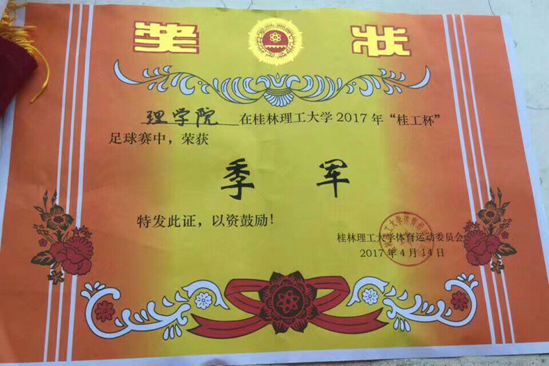 比赛伊始,各参赛成员彼此握手,以示友谊第一,比赛第二的宗旨。随着裁判员一声哨响,比赛正式开始。身穿白色球服的理学院球员细腻的脚法,凶猛的进攻,步步紧逼,使信息球员开场有些被动。经过双方近半小时的激烈角逐,理学院赢得一次破门。但信息队员也不甘示弱,严密防守、机警进攻,加以默契的配合、缜密的队形部署,很快使比赛进入白热化阶段。短短5分钟,信息后卫以从众脚争夺之中将球扫回脚下,以迅雷不及掩耳之势射进理学院的球门,上半场以平局结束。经过短暂的中场休息,队员们很快进入激烈紧张的比赛状态。尽管当时天气不是很好,但健儿们毫不受到天气的影响,充分演绎着足球的惊险与激情。整场比赛高潮迭起,各队队员激烈争夺。最终,理学院以3:1的成绩战胜信息学院,夺得本年度“桂工杯”足球赛季军。