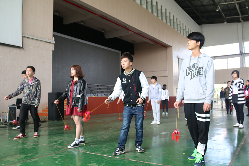活动一开始,全体师生共同奏唱中国共青团团歌,夏勇超老师致开场词,本次活动积极响应了校团委提出的团支部活力提升计划,希望通过本次活动,我院各团支部能增进交流,团结共进,以饱满乐观的精神状态迎接学习、生活中的挑战。随后,各项传统文化主题的游戏活动有序开展,活动有“我要抛绣球”、“嗨翻竹竿舞”、“一起踢毽子”和“翻版抢花炮”,同学们在欢乐融洽的气氛中体验着传统文化的魅力与激情。