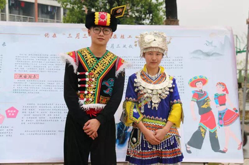 “三月三”是壮族人民的传统节日,壮族人称“窝埠坡”或“窝坡”,原意为到垌外、田间去唱歌,所以也称“歌圩节”。活动现场,同学们通过展示民族特色服饰吸引师生围观,进而结合展板讲解“三月三”的由来和介绍抛绣球、对歌、做五色糯饭、染彩色蛋等节日习俗。在互动环节,主要以民族美食、民族习俗以及民族歌曲来引导大家多方面了解壮乡文化,娱乐中学习提高。针对大部分同学们太阳集团城网站2017为何广西有“三月三”假期的疑问,活动中从国家法规和人民愿望两方面为大家进行解答。
