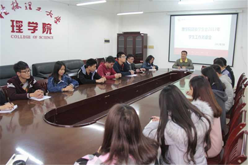 为进一步明确理学院团委学生会2017年工作思路,明确今后工作的重心,提高工作的针对性和实效性,理学院于3月3日16:30在雁山校区07115会议室召开了理学院团委学生会2017年工作务虚会。团委学生会主席团与全体部长参加了会议,会议由学院团委书记单江涛老师主持。