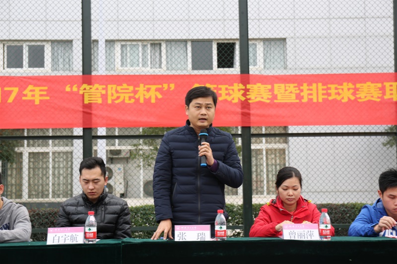 管理学院党委副书记张瑞宣布2017年“管院杯”篮球赛暨排球赛正式开幕。