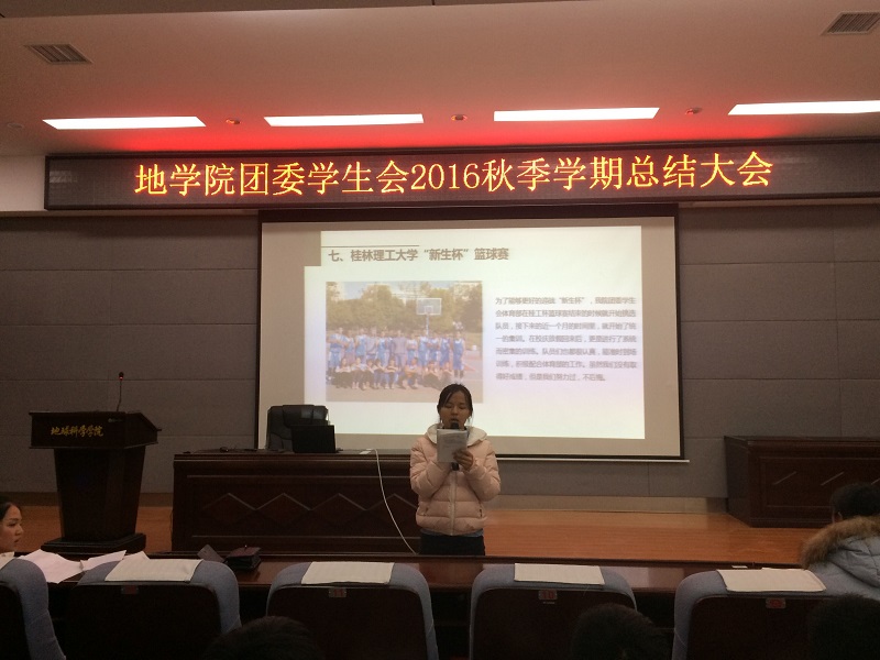 12月29日晚,地学院团委、学生会年度工作总结大会在逸夫楼501报告厅顺利召开。学院团委书记蒋琼以及团委、学生会成员参加了本次大会。