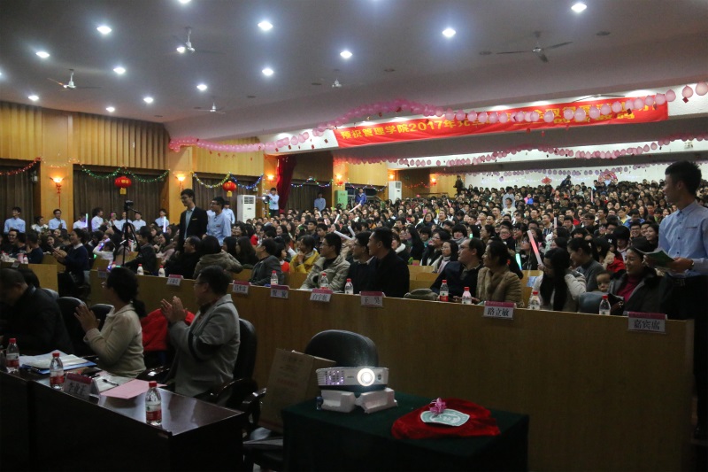 春华秋实,博芸盛宴。12月26日晚,管理学院2017年元旦联欢晚会在屏风校区南礼堂隆重举行。管理学院党委书记周章明、院长连漪、副院长江晓云、蒙永亨、党委副书记张瑞、学院各专业教研室主任、各教工党支部书记、各年级辅导员老师与近1000名管院学子相聚南校区礼堂,共同欢庆新年到来。