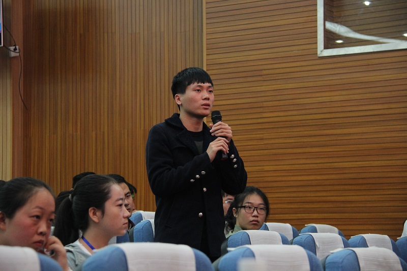 会议开始,万千副书记代表学校学院向四位校友取得的成绩表示祝贺,并对他们回母校与师弟师妹们分享交流成功的经验表示感谢,四位校友的奋斗历程不仅实现了他们自己的人生价值,也彰显了我院的教育教学水平,希望他们的成功经验能为广大学子今后的考研、创业和就业道路提供借鉴和帮助。随后四位校友依次从自己的家庭、学习、工作、生活等情况分享了自己创业就业历程,并介绍了公司的发展历程、现状、企业文化以及公司发展的规模、实力和用人要求,使同学们对几家公司的基本情况有了初步认识与了解。