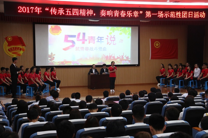 活动伊始,全体师生起立奏唱共青团团歌。活动以新闻联播为框架,随后行政管理2015-2班团支部成员一同观看五四运动相关视频并展开热烈讨论。麦盛辉同学随即做了题为《青春的我们要拼搏》的演讲,他引用毛泽东诗句“数千古风流人物,还看我们!”壮志豪言引发现场同学共鸣。活动氛围渐入佳境。
