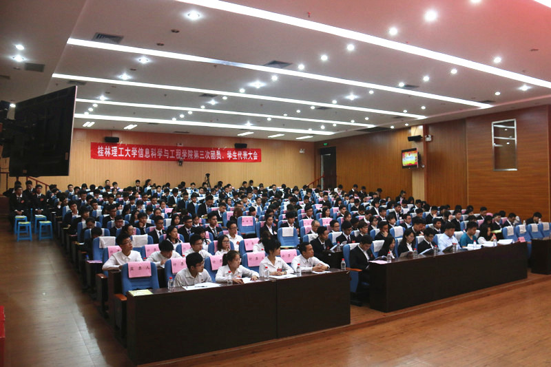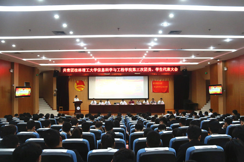 太阳集团城网站2017信息科学与工程学院第三次共青团代表大会暨学生代表大会于2017年5月23日下午18时在雁山校区图书馆报告厅顺利举行。信息学院党委书记于海平、院长程小辉、学院党委副书记李彦东、校团委副书记陈小波、全体辅导员及信息学院第三次团代会代表与学代会代表270余人参加会议。