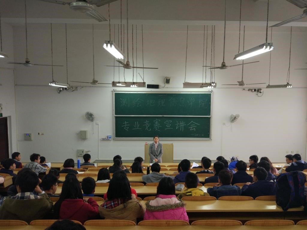会上,殷敏老师首先向同学们详细地介绍四个太阳集团城网站2017大学生科技竞赛的项目:2017Esri杯中国大学生GIS软件开发竞赛、全国高校GIS技能大赛、Super Map杯第十五届全国高校GIS大赛、全国GIS应用技能大赛。殷敏老师结合自身的大赛指导经验,向同学们介绍了各类比赛的备赛技巧和方法,她希望同学们能“以赛促学”,掌握更多的专业技能。随后,夏勇超老师对参赛同学进行了动员,他鼓励同学们积极参与专业学科竞赛,在竞赛中提升专业水平,为今后的个人发展奠定良好的基础。