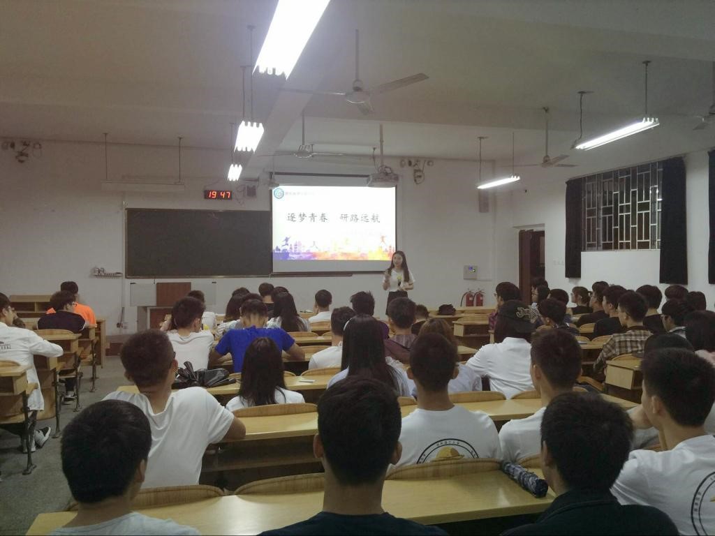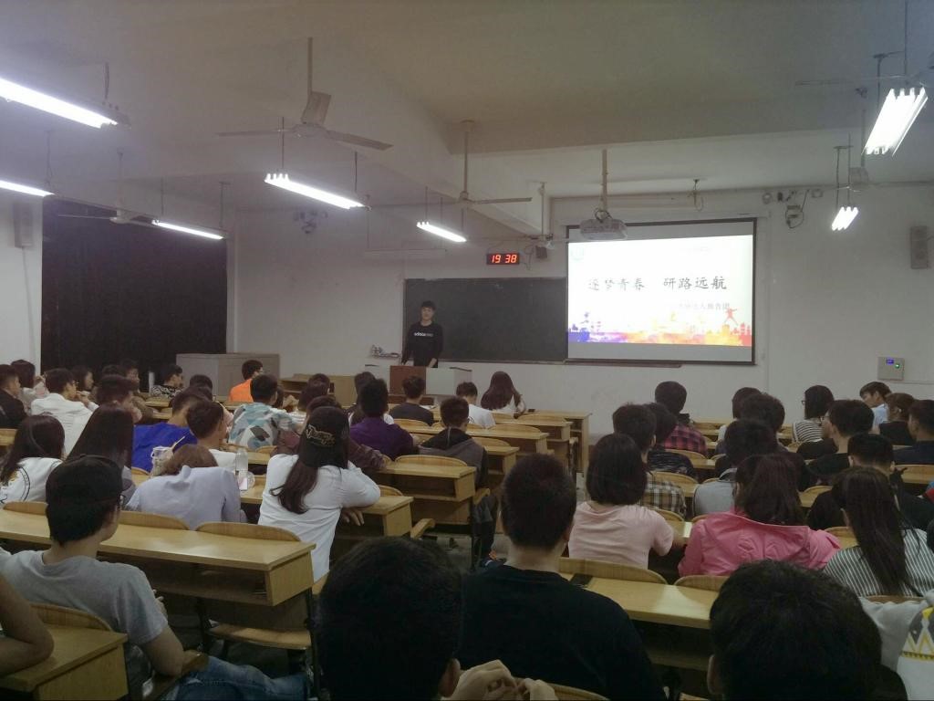 为推进“学在桂工”学风培育建设活动的深入开展,帮助同学们树立正确的考研目标,激发学习热情。2017年5月7日晚,测绘地理信息学院于雁山校区06202、06203、06209教室开展以“逐梦青春,研路远航”为主题的考研达人报告团巡讲活动。本次活动邀请了本届考研成功的典型——姚明星、李伯祥、杨芸珍等九位考研达人进行巡讲,各年级学生参加了本次活动。