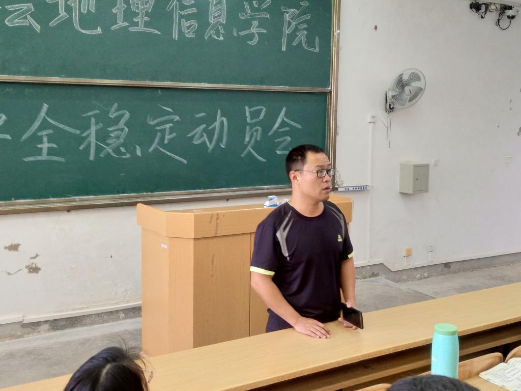 5月26日中午,测绘地理信息学院于雁山校区04111教室顺利召开安全稳定动员大会。院党委副书记张海东老师,团委副书记夏勇超老师,辅导员刘茜雯老师、刘砥老师、徐丹老师,以及大一至大四各级生活委员、宿舍长参加会议。