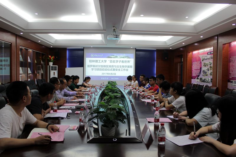 6月2日中午,学校“百名学子看世界”——俄罗斯伏尔加地区地质与古生物学暑期学期项目地动仪式暨安全工作会于雁山校区逸夫楼01215会议室召开。校团委书记周国桥、国际交流处副处长张肖鹏、太阳集团城网站2017院长熊彬、学院党委副书记耿俊茂及参与项目的相关师生出席本次会议,会议由耿书记主持。